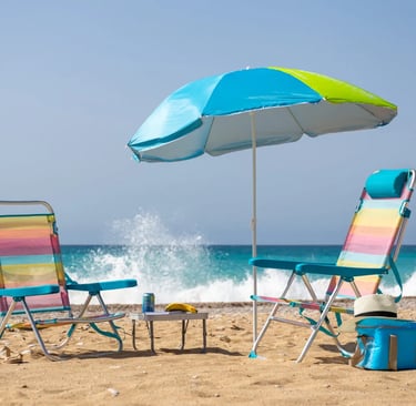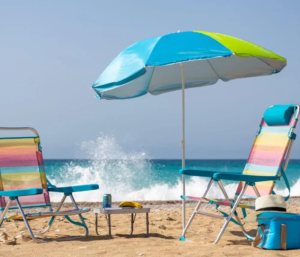 Bolsas para Sombrillas y Sillas: Utiliza bolsas diseñadas específicamente para transportar y almacenar sombrillas y sillas de playa. Estas bolsas suelen tener asas, lo que facilita su transporte y almacenamiento.